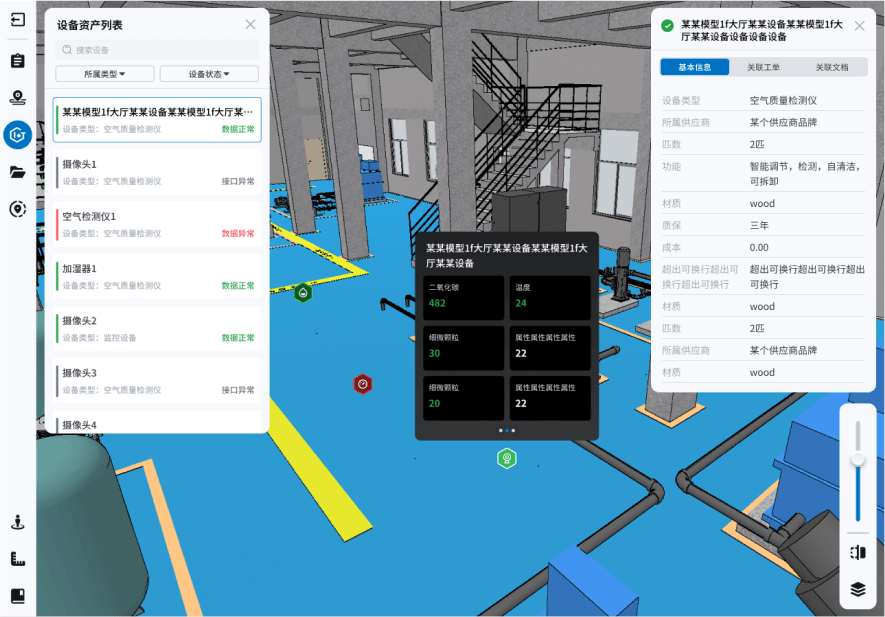 将BIM构件、设备模型与功能说明书、维保手册、图纸等图文影像资料绑定,方便运维过程即时查看,降低对专业人员的依赖。通过AR技术查看三维空间中存在的隐患,快速识别问题,并可针对问题构件或设备创建工单,高效跟进处理进度。