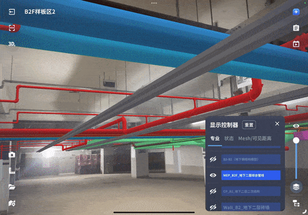 通过移动端查看隐蔽工程,实现在室内外不同场景快速定位并加载BIM模型,透视地下管道、隐蔽设备管线的位置、走向和每个BIM构件的全面属性。