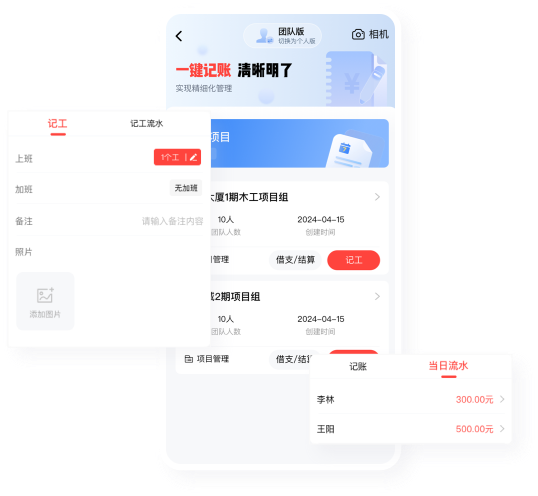 支持记录班组各个工人的考勤、工时等信息,方便管理者对班组人员进行全面的管理和监督。